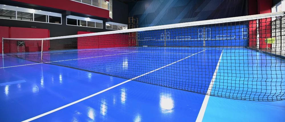 Multiple colours can be used to define different court zones, warm-up areas, or functional fitness spaces.